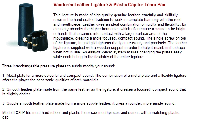 [Vandoren] 반도린 테너 레더 색소폰 리가춰 Leather LC28P (하드러버 + 캡)
