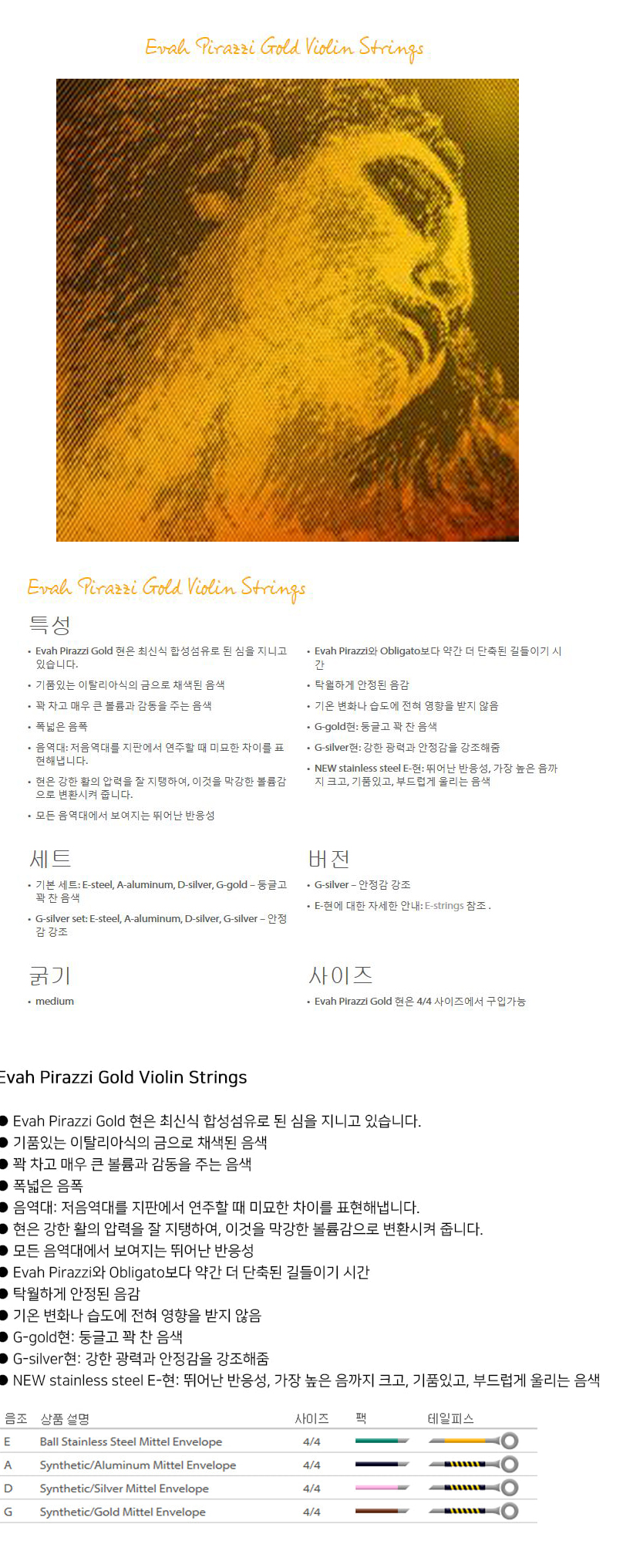 [Pirastro] 피라스트로 에바 피라치 골드 바이올린 현 세트 4/4