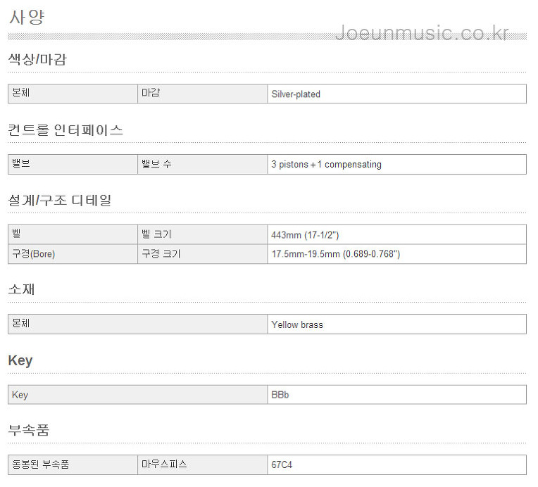 - 세계적인 연주가들의 협조로 개발된 이 모델은 브라스 악기의 디자인 및 제조 방식의 최신 기술이 사용됐고 솔로 연주 또는 앙상블의 안정된 기초를 제공하는데 이상적입니다.