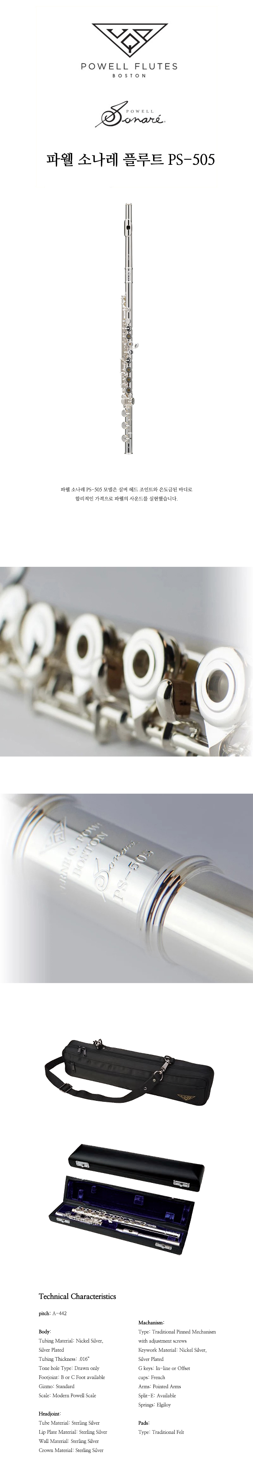 [Powell] 파우웰 소나레 플루트 Sonare PS-505 헤드실버 (R/B)