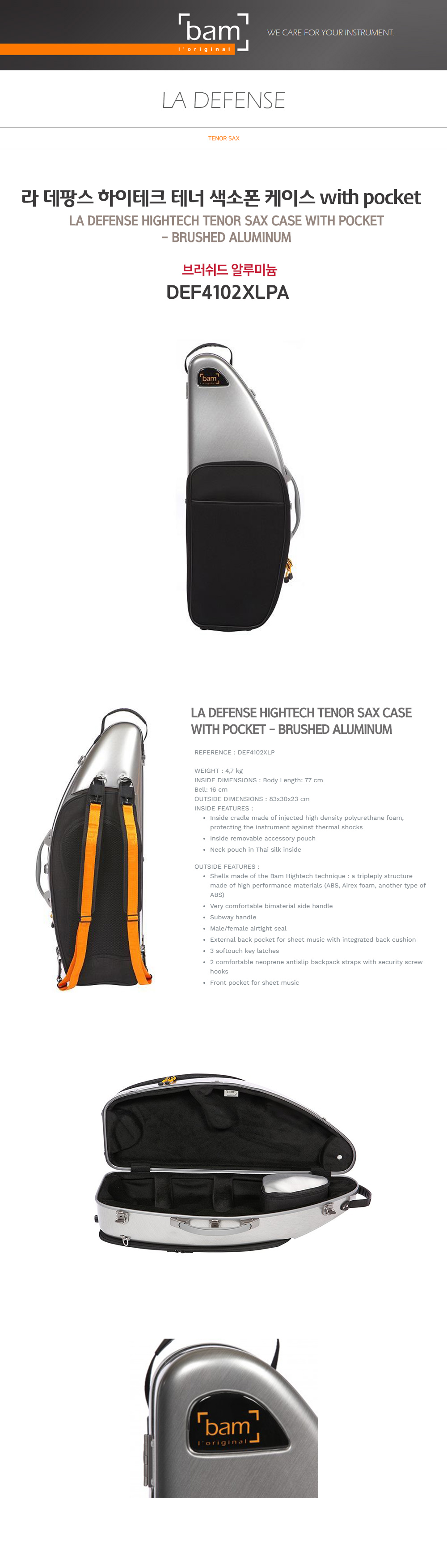 [BAM] 뱀 테너 색소폰 케이스 하이테크 라데팡스 La Defense with pocket (DEF4102XLP) tenor saxophone case