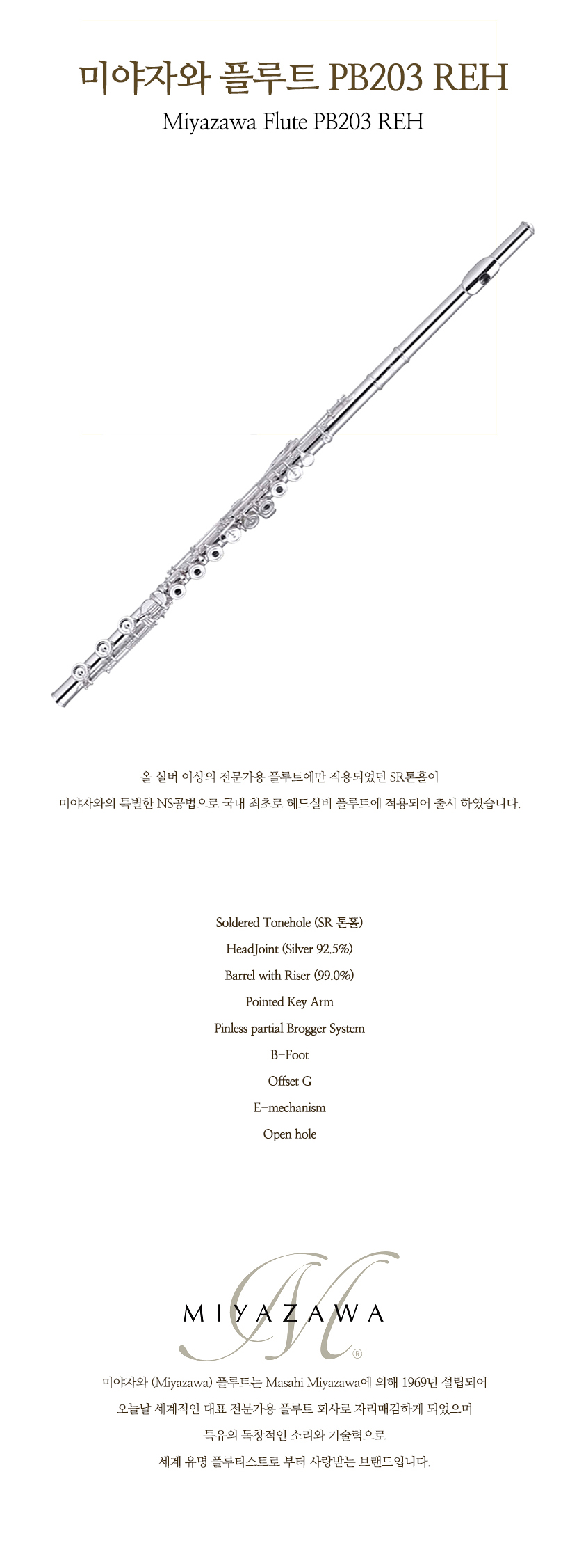[Miyazawa] 미야자와 플루트 PB 203REH Head Silver