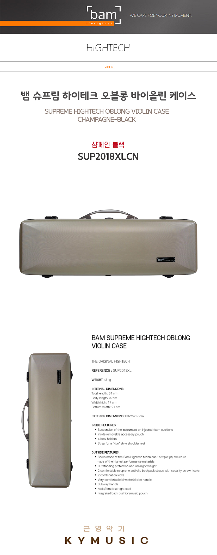 [Bam] 뱀 바이올린 케이스 슈프림 하이테크 오블롱 샴페인 블랙 SUP2018XLCN
