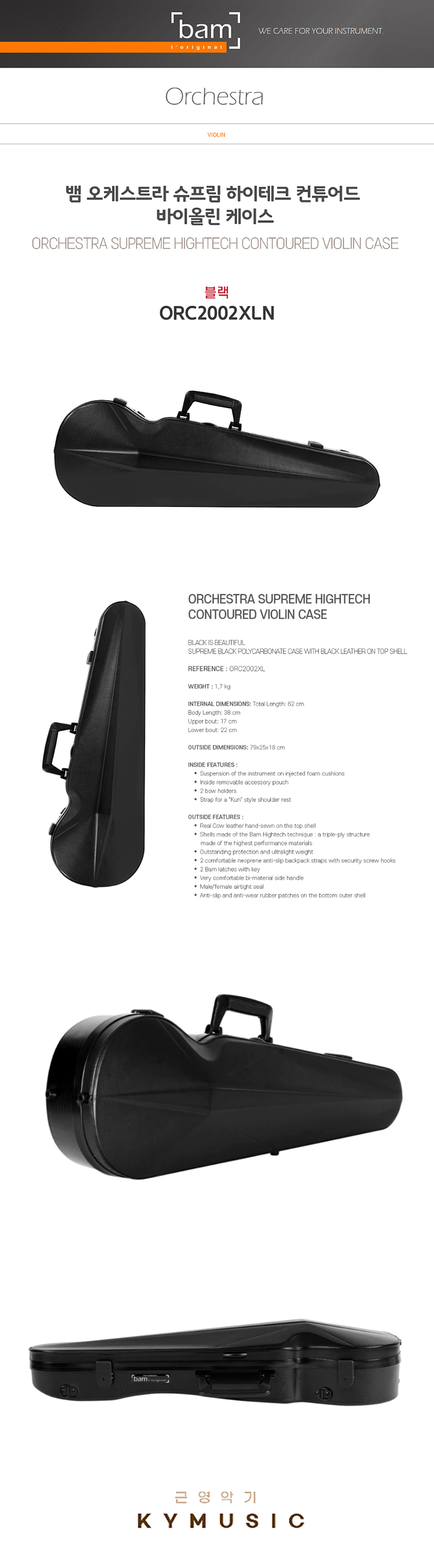 [Bam] 뱀 바이올린 케이스 오케스트라 슈프림 하이테크 컨튜어드 블랙 ORC2002XLN