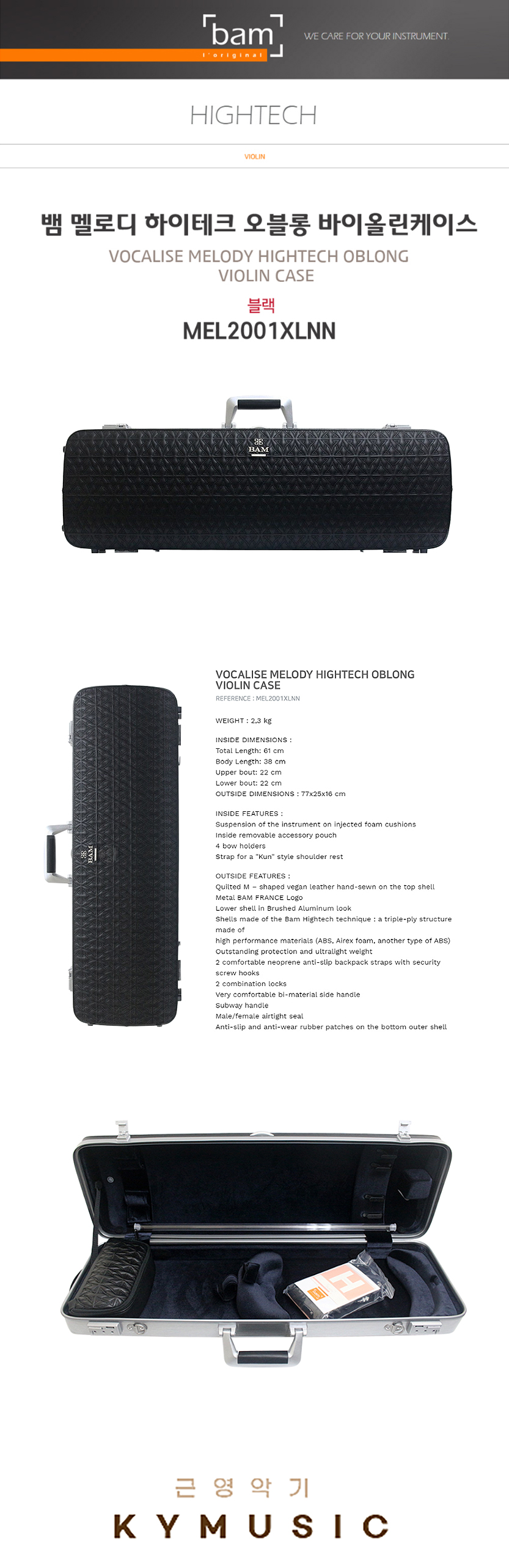 [Bam] 뱀 바이올린 케이스 보칼리즈 멜로디 하이테크 오블롱 블랙 MEL2001XLNN