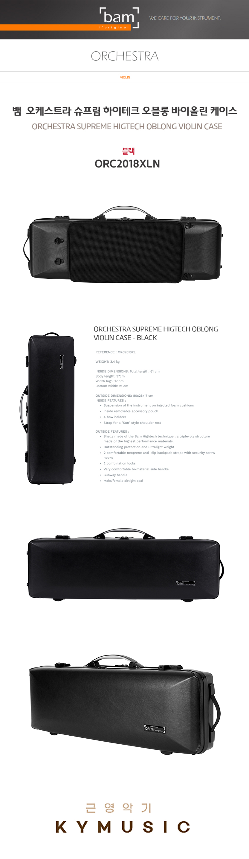 [Bam] 뱀 바이올린 케이스 오케스트라 슈프림 하이테크 오블롱 블랙 ORC2018XLN
