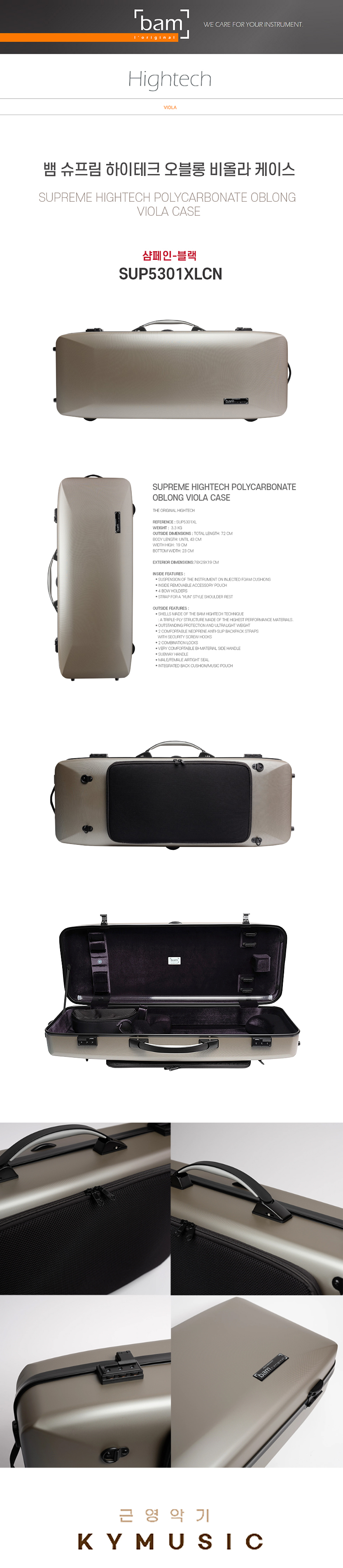 [Bam] 뱀 비올라 케이스 슈프림 하이테크 오블롱 샴페인 블랙 SUP5301XLCN
