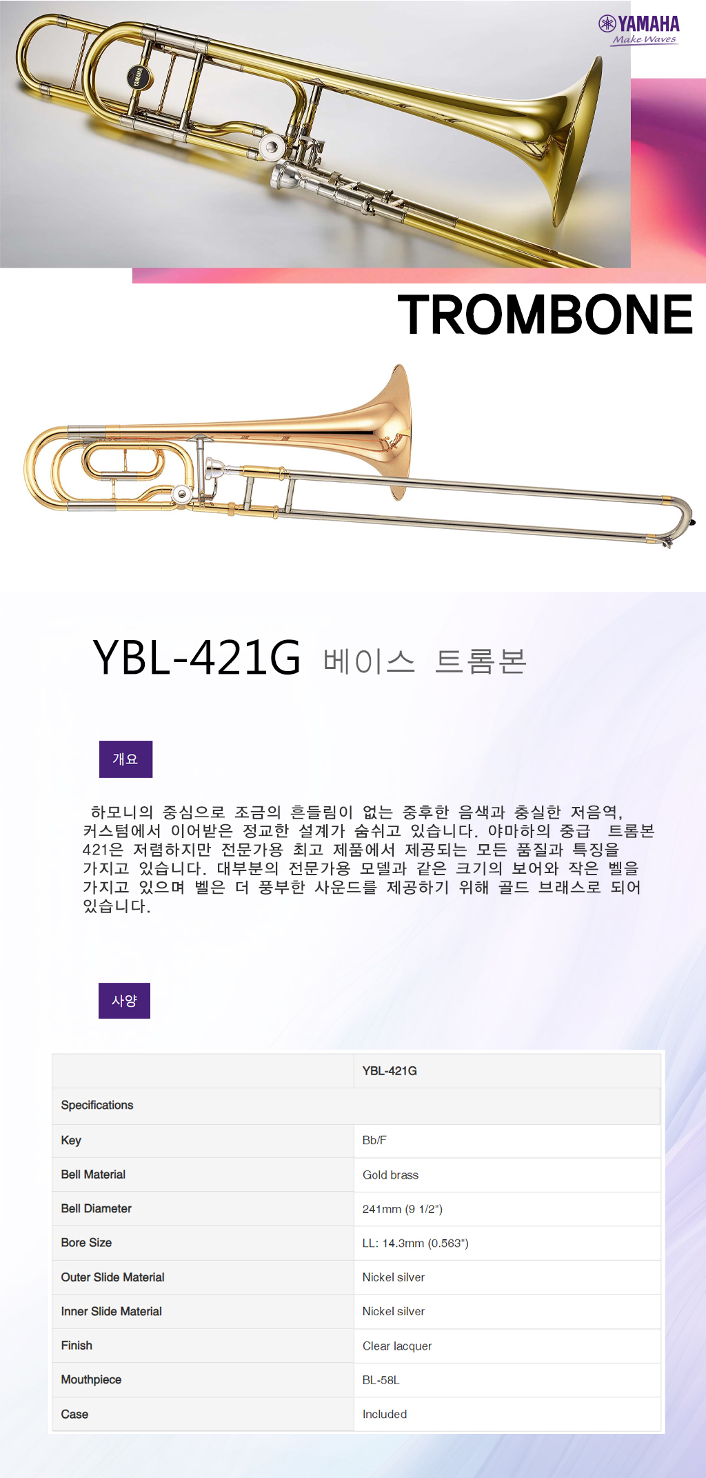 [YAMAHA] 야마하 트럼본 YBL421GE