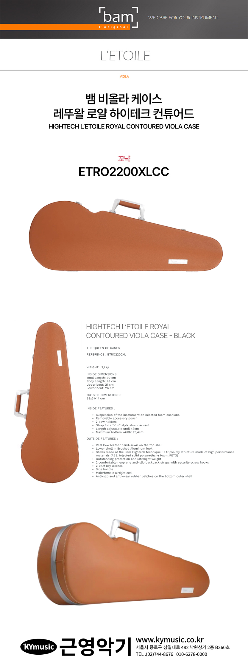 [Bam] 뱀 비올라 케이스 레뚜왈 로얄 하이테크 컨튜어드 꼬냑 ETR2200XLCC