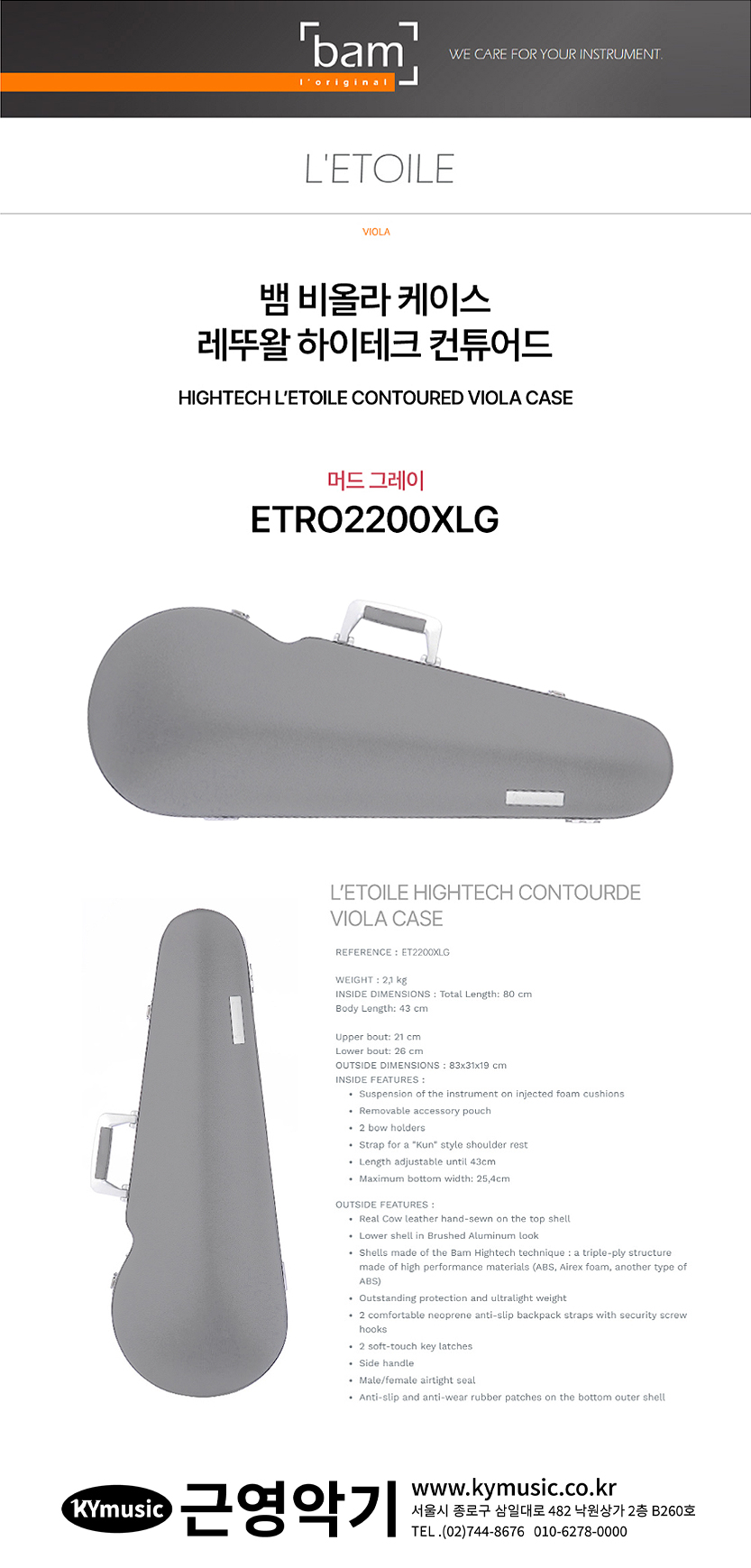 [Bam] 뱀 비올라 케이스 하이테크 레뚜왈 컨튜어드 머드 그레이 ET2200XLG