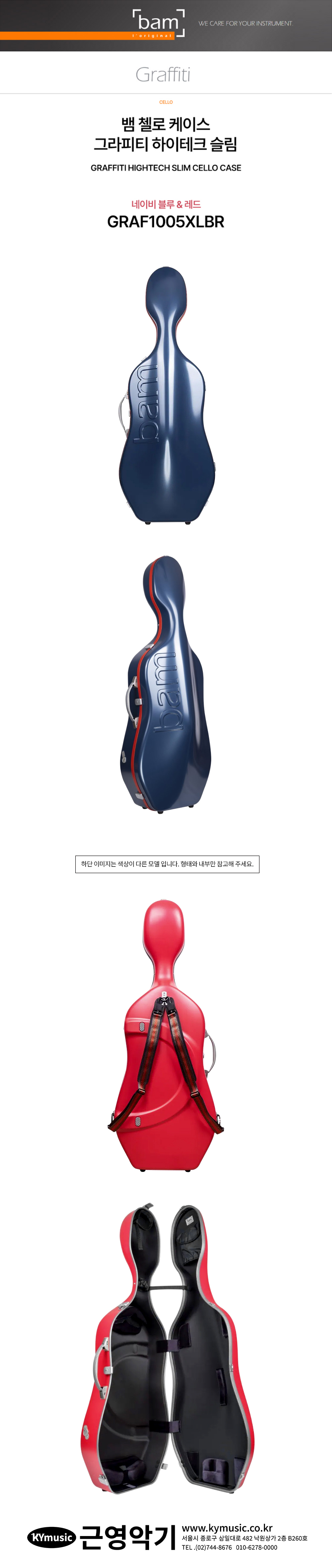 [Bam] 뱀 첼로 케이스 그라피티 하이테크 슬림 네이비 블루 & 레드 GRAF1005XLBR