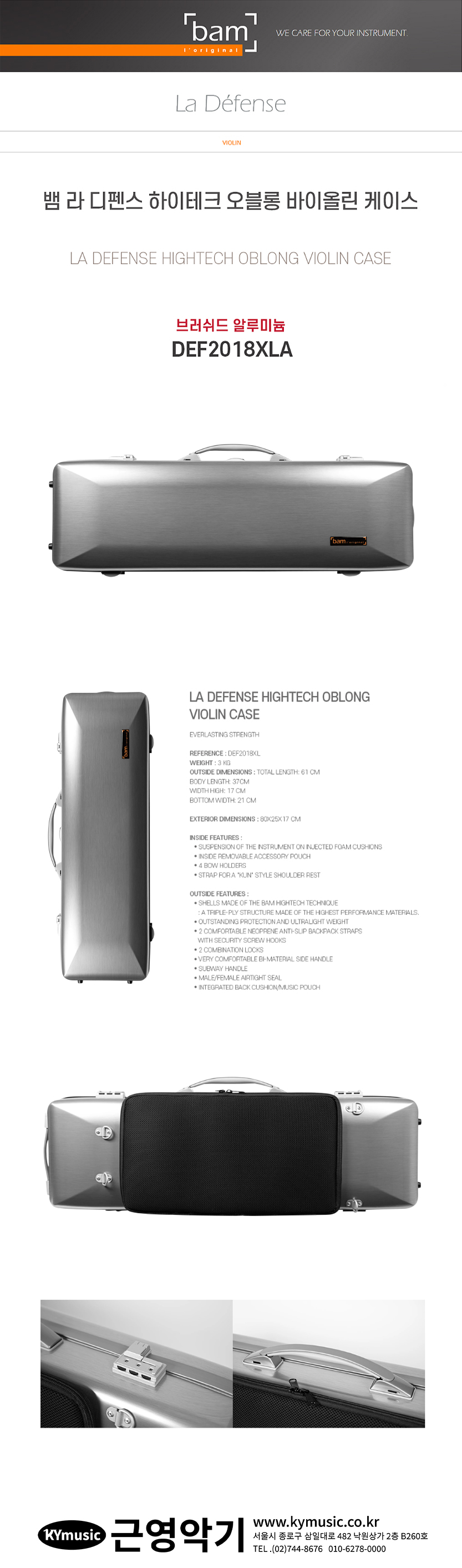 [Bam] 뱀 바이올린 케이스 라디펜스 하이테크 오블롱 라데팡스 브러쉬드 알루미늄 DEF2018XLA