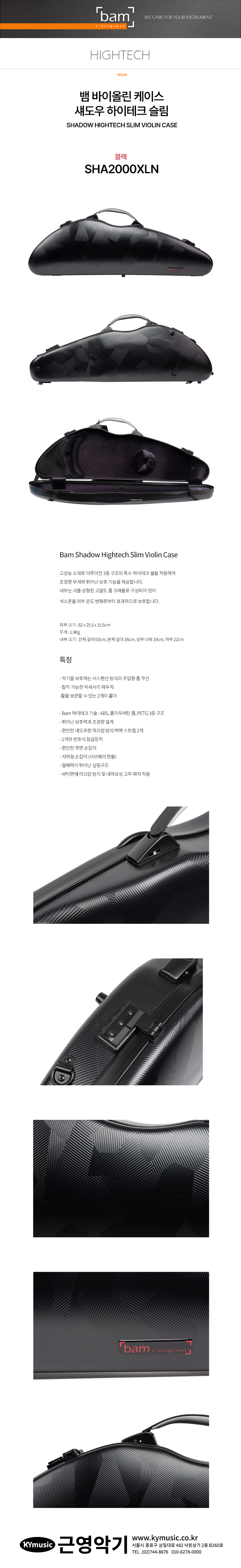 [Bam] 뱀 바이올린 케이스 섀도우 하이테크 슬림 블랙 SHA2000XLN