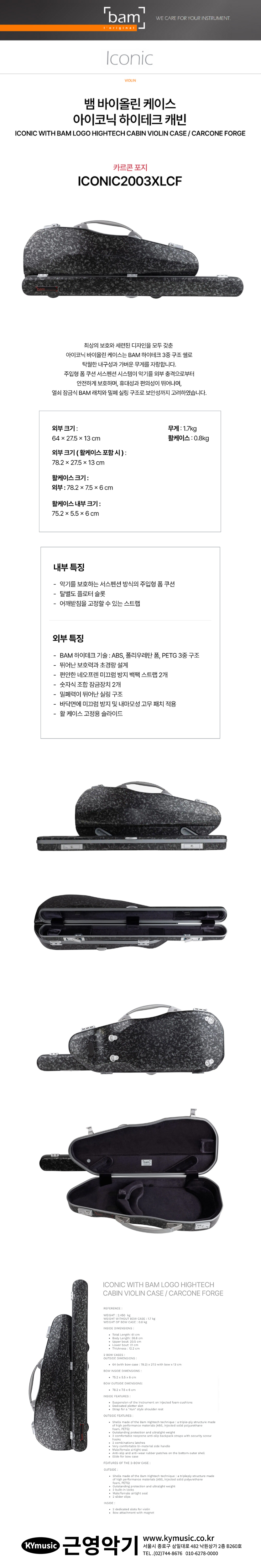 [Bam] 뱀 바이올린 케이스 아이코닉 하이테크 캐빈 카르콘 포지 ICONIC2003XLCF