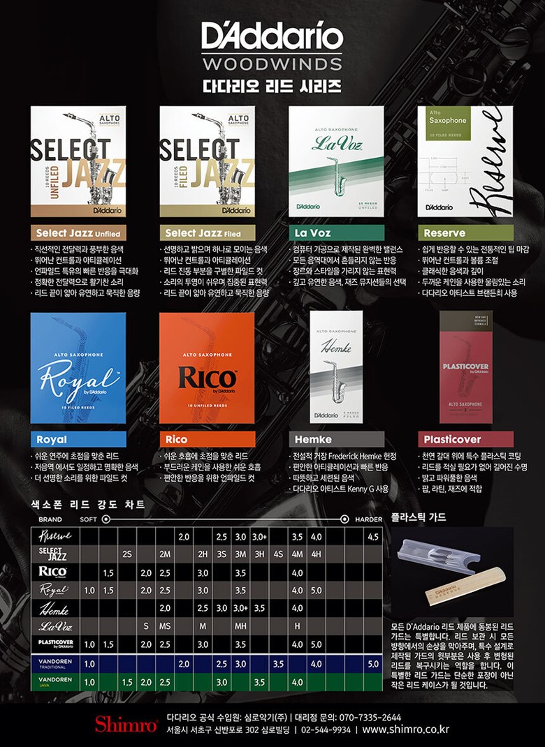 [Daddario] 다다리오 플라스틱커버 알토 색소폰 리드
